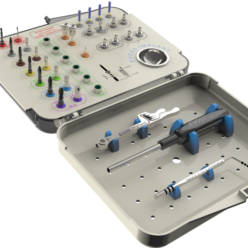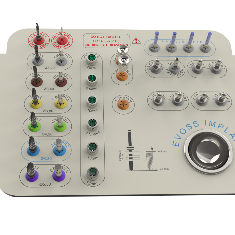 Cerrahi set; şeffaf kapak, cerrahi frezler, sıkma parçaları, boyun genişleticiler, paralel pin ve hex anahtarları ile birlikte torklu raşet ve diğer el aletlerinin de bulunduğu kapsamlı bir settir. Kompakt ve kullanışlı tasarımıyla, kliniklerde implant ameliyatları sırasında diş hekimlerinin el değmeden steril bir şekilde kullandıkları el aletlerini kapsar. Cerrahi frezler yüksek kalitede paslanmaz çelik ve titanyumdan üretilmektedir. Cerrahi setler otoklavda steril edilmektedir.